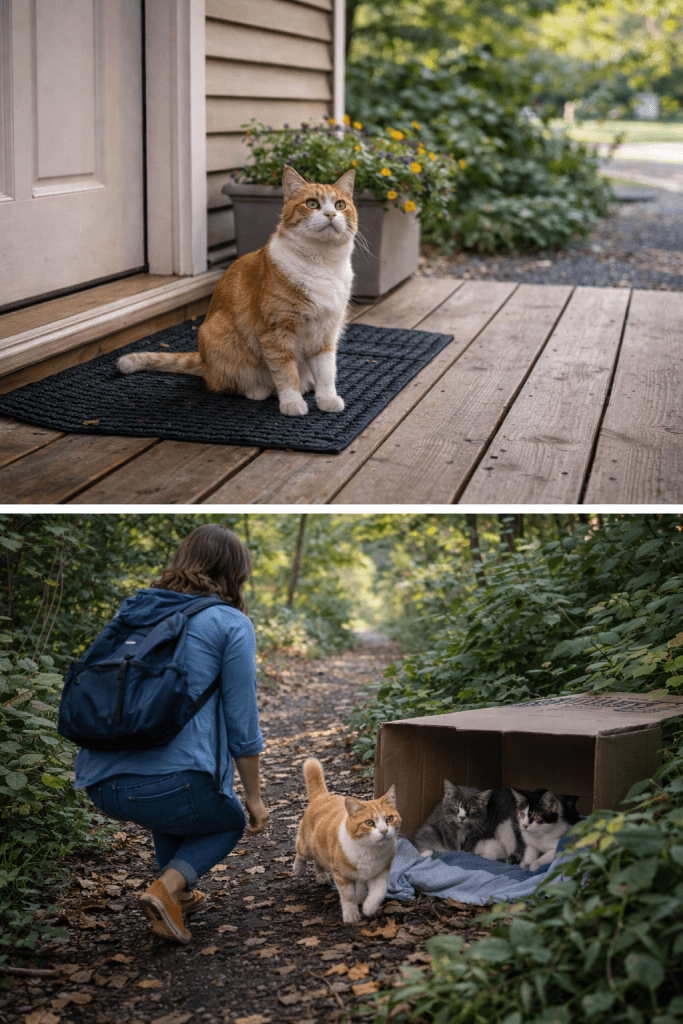 The woman immediately understood what had happened. The stray cat had come to her porch not by accident — it was asking for help.